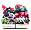 The Mini Scarves can be worn around the neck, the wrist, as a headband, in a bun or even around the bag…