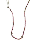 features strand of pink & green tourmaline beads with silver daisy charms