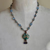 - hand painted both sides of plaque; 4 agate coloured beads hang from the base
