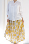 The Emily Skirt features soft gathering along its enclosed elasticated waistband, allowing it to sit flat on the waist yet provide a fluid drape.