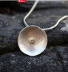 A hammered hand formed silver cup, set with a tiny diamond in 18ct gold and hung on a 1mm snake chain, this pendant is beautifully elegant and simple.